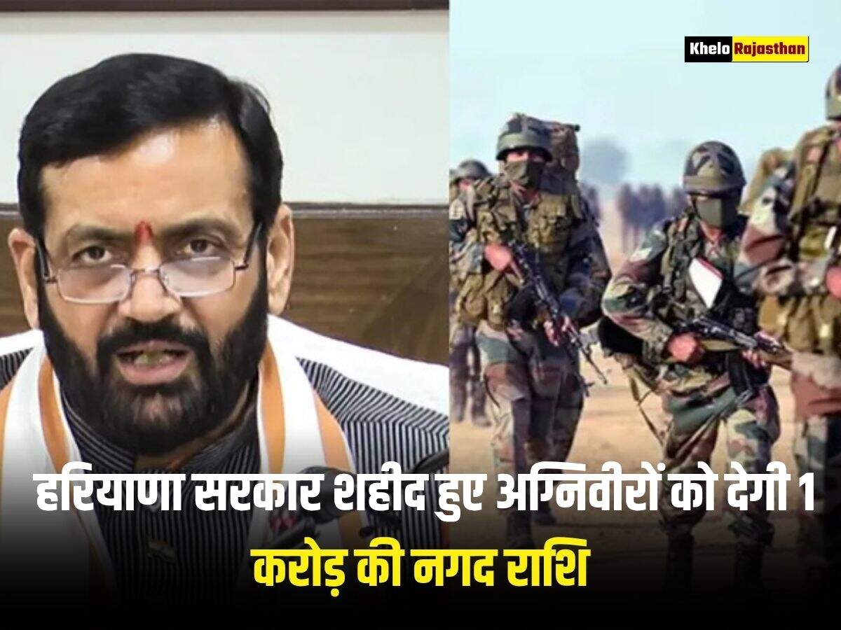 हरियाणा सरकार शहीद हुए अग्निवीरों को देगी 1 करोड़ की नगद राशि, परिवार वालों को देगी वीरता पुरस्कार