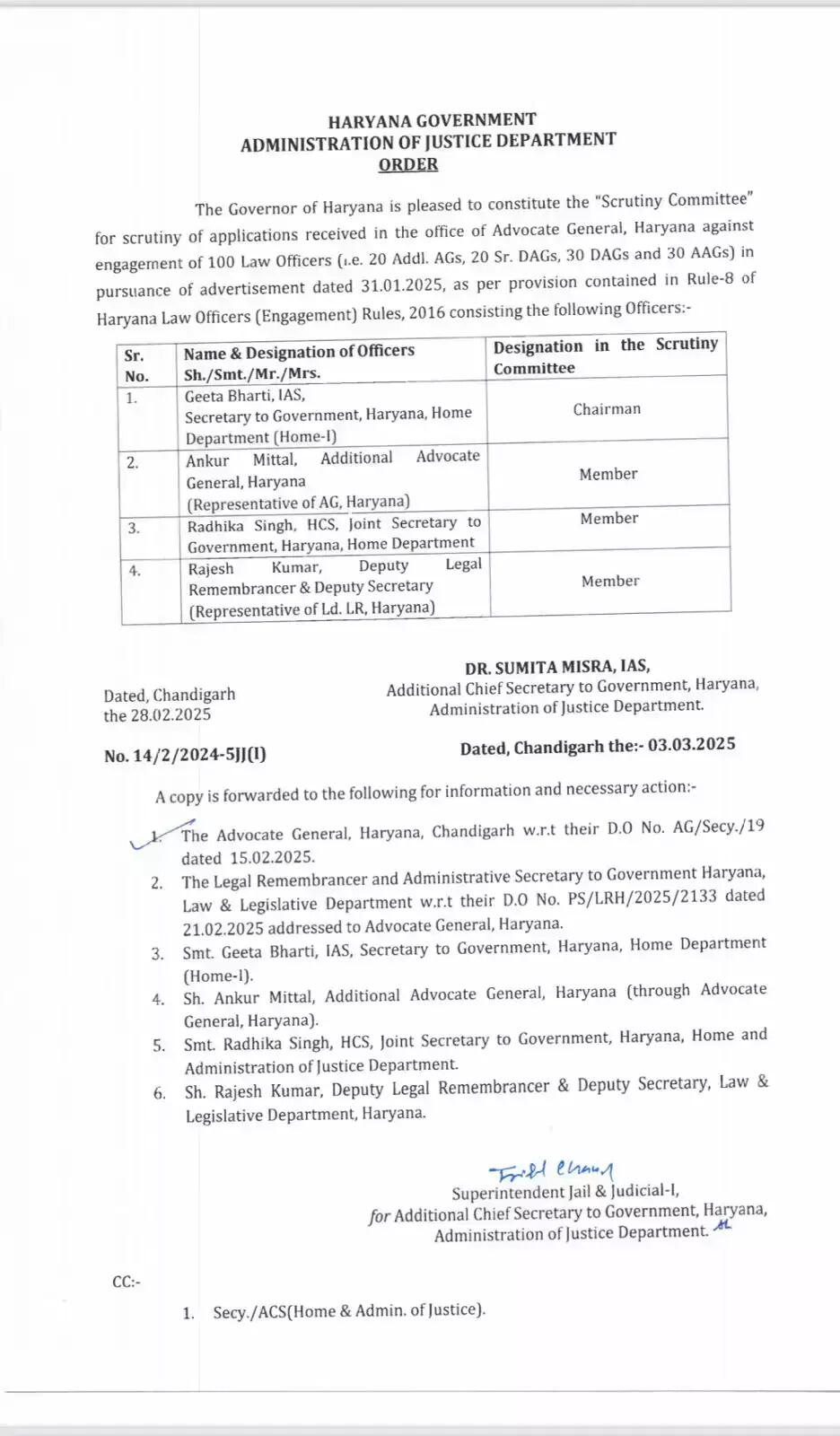 हरियाणा सरकार ने इन अधिकारियों की नियुक्ति पर लगाई रोक, जांच समिति का हुआ गठन