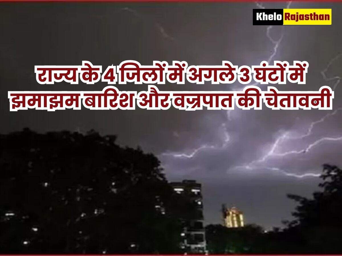 राज्य के 4 जिलों में अगले 3 घंटों में झमाझम बारिश और वज्रपात की चेतावनी, देखें मौसम का सटीक पूर्वानुमान