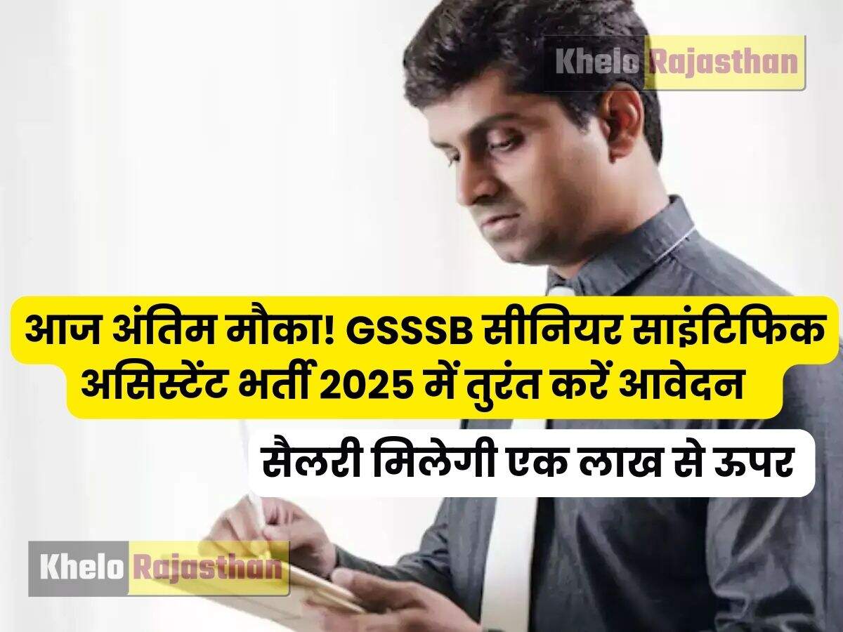 आज अंतिम मौका! GSSSB सीनियर साइंटिफिक असिस्टेंट भर्ती 2025 में तुरंत करें आवेदन, सैलरी मिलेगी एक लाख से ऊपर
