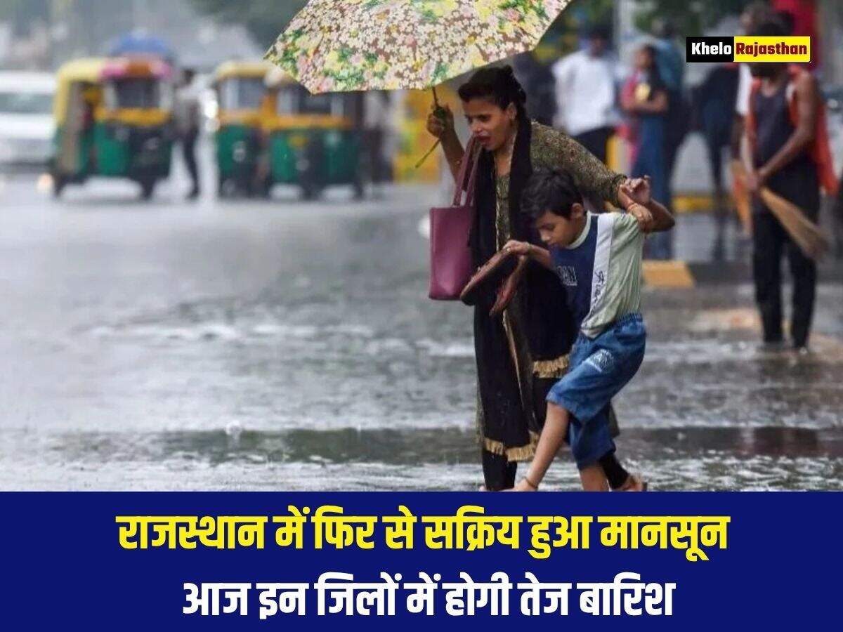 राजस्थान में फिर से सक्रिय हुआ मानसून, आज इन जिलों में होगी तेज बारिश