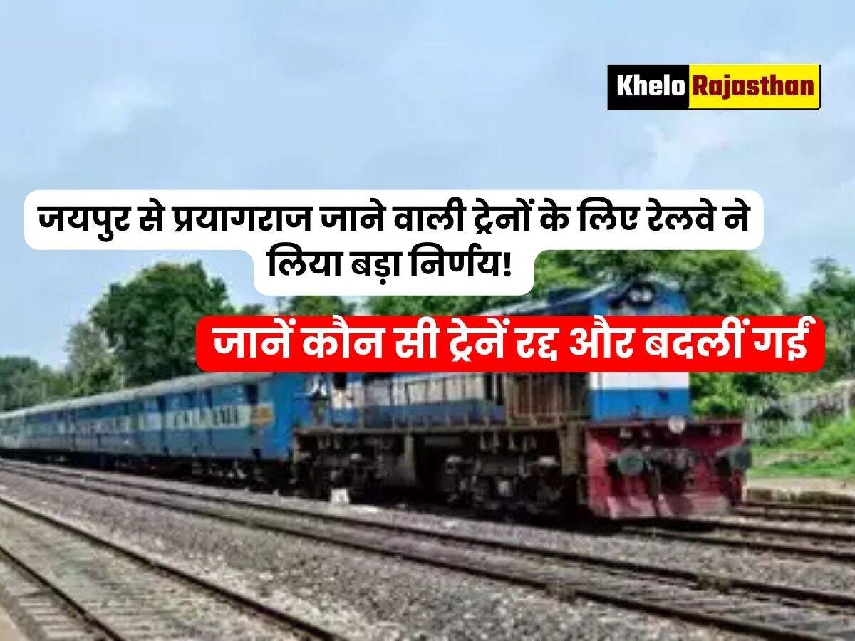 जयपुर से प्रयागराज जाने वाली ट्रेनों के लिए रेलवे ने लिया बड़ा निर्णय! जानें कौन सी ट्रेनें रद्द और बदलीं गईं