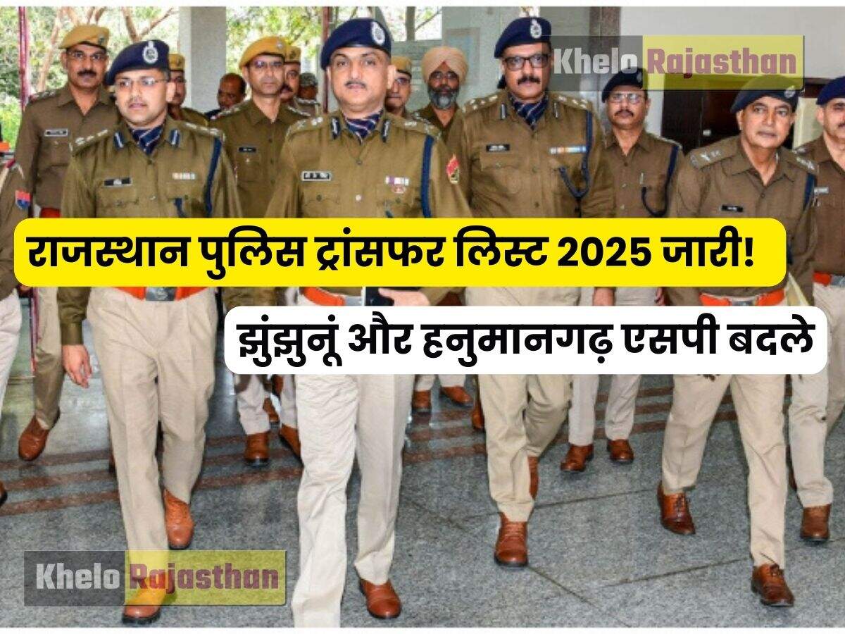 राजस्थान पुलिस ट्रांसफर लिस्ट 2025 जारी! झुंझुनूं और हनुमानगढ़ एसपी बदले