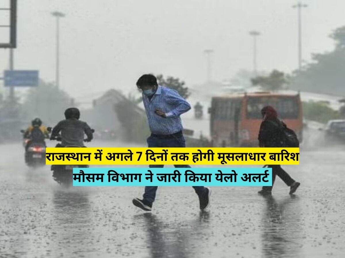 राजस्थान में अगले 7 दिनों तक होगी मूसलाधार बारिश, मौसम विभाग ने जारी किया येलो अलर्ट